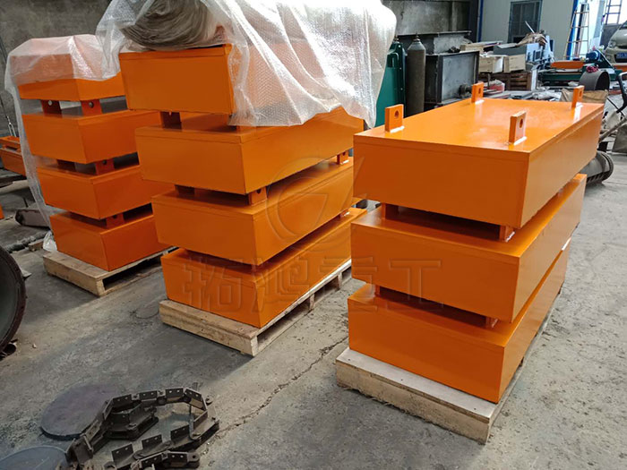 RCYB懸掛式永磁除鐵器內部采用高矯頑力,高剩磁的特殊永磁體“釹鐵硼”等材料組成復合磁系。具有磁力強、壽命長、安裝簡單、使用方便、運行可靠等特點,適用于皮帶機、振動輸送機、電磁振動給料機、下料溜槽上的非磁性物料中除鐵。